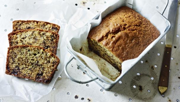 8. Spoon the melted chocolate into a piping bag and pipe zig-zags across the top of the loaf. Set aside for the chocolate to set. Slice and serve.