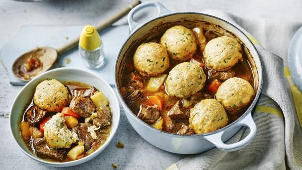 A little bit of patience will be rewarded with this rich beef stew with parsnip, butternut squash and fluffy dumplings.