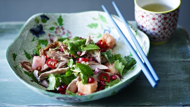 Enjoy fantastic contrasts in this zingy salad – salt, sweet and sour flavours combine with warm duck and chilled fruit.