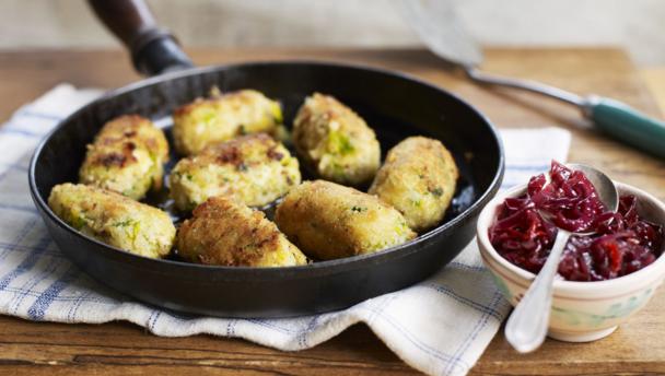1. For the sausages, melt the butter in a large non-stick frying pan and fry the leek gently for 8-10minutes, or until very soft but not coloured.