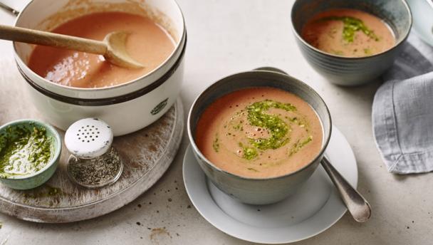 The basil pesto adds a lovely flavour, but this soup is still very good without it.